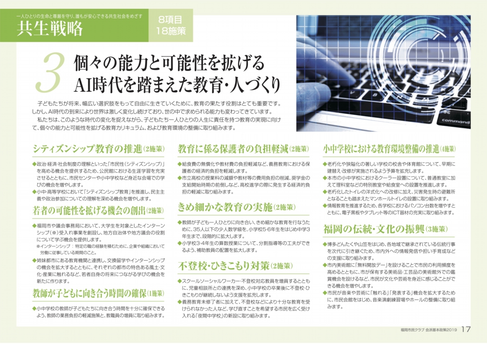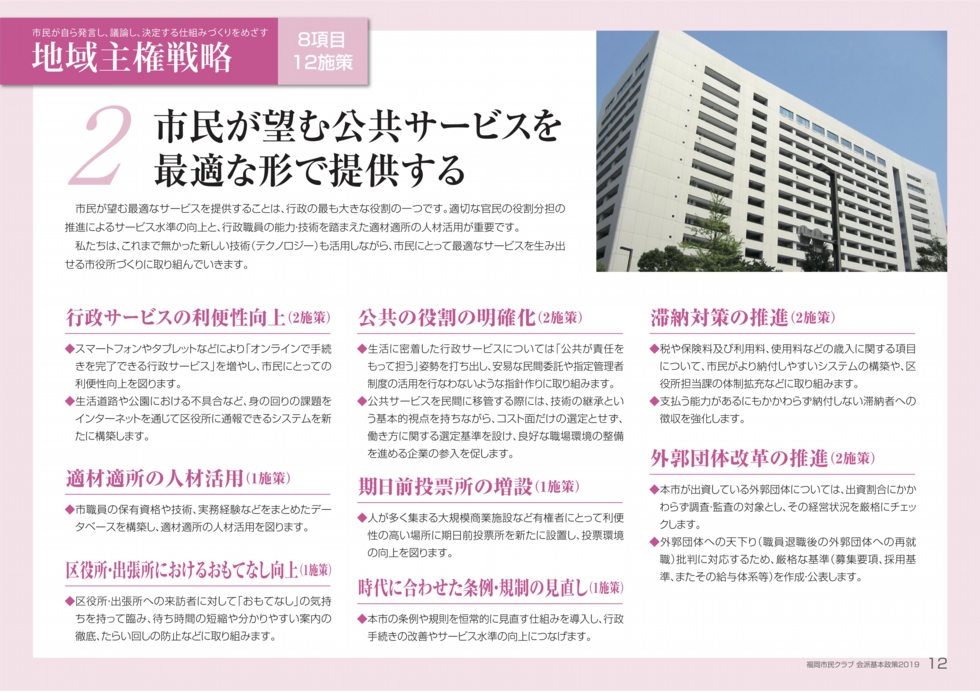 HOME > 福岡市民クラブ 会派基本政策2019