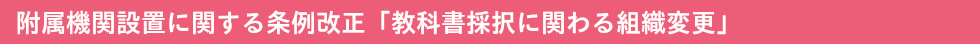 文部科学省の指示・指導のもと、一昨年からの教科書問題により結果的に疑念を生じさせたことを踏まえ、教科用図書採択に係る事務の見直しを行なうことから、附属機関である教科用図書採択に関する委員会の名称変更の条例改正を行ないました。
