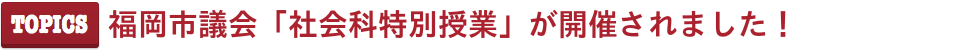 今年度から新たな事業として取り組んでいる、「福岡市議会社会科特別授業」。これは、市内の小学6年生を対象に、市議会議場における本会議体験や、市議会議員との意見交換を通じて、「子どもたちに議会の仕組みや議員の仕事を知ってもらおう!」と、福岡市議会が独自に企画・実施している取り組みです。