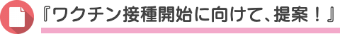 - 私たちは、2度目の緊急事態措置を受けての提言要請や2月議会での議案質疑及び常任委員会審議、3月議会における条例・予算特別委員会分科会審議など、様々な場面でワクチン接種に関する提案・要望を重ねてきました。