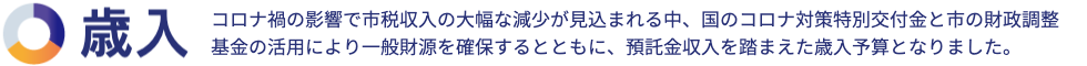 一方で、自治体の基準財政収入額が影響する地方交付税と臨時財政対策債については増額され、昨年度比160億円のプラス(増)となる見込みとなっています。また、国によるコロナウイルス対策の特別交付金の創設分と財政調整基金の活用を合わせて、一般財源の総額については令和2年度を上回る額4,681億円を確保しました。