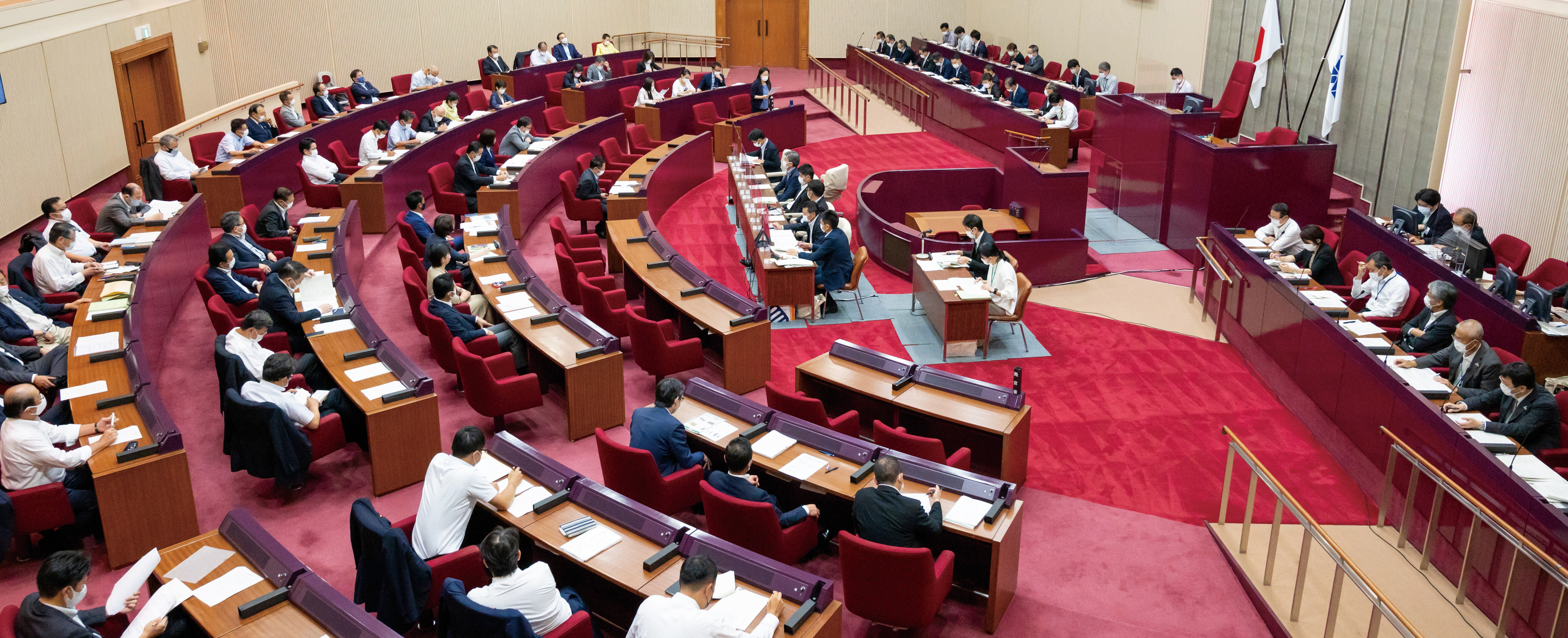 - 感染防止対策の強化のため、本会議場を使った異例の決算特別委員会となりました。