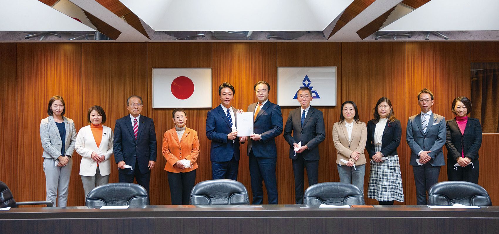 12月14日(火)、髙島市長に「令和4年度予算要望」を手渡しました。皆さまにお示ししております『会派基本政策2019』(※)の4つの戦略に基づく施策をベースに、コロナ対策を踏まえつつ経済を回していく視点も含め、要望を提出しました。提出にあたっては、11月24日(水)に開催した「第10回議会活動報告会」(※)でいただいたご意見も加え、要望は昨年をさらに上回る「全88項目225施策」にのぼりました。